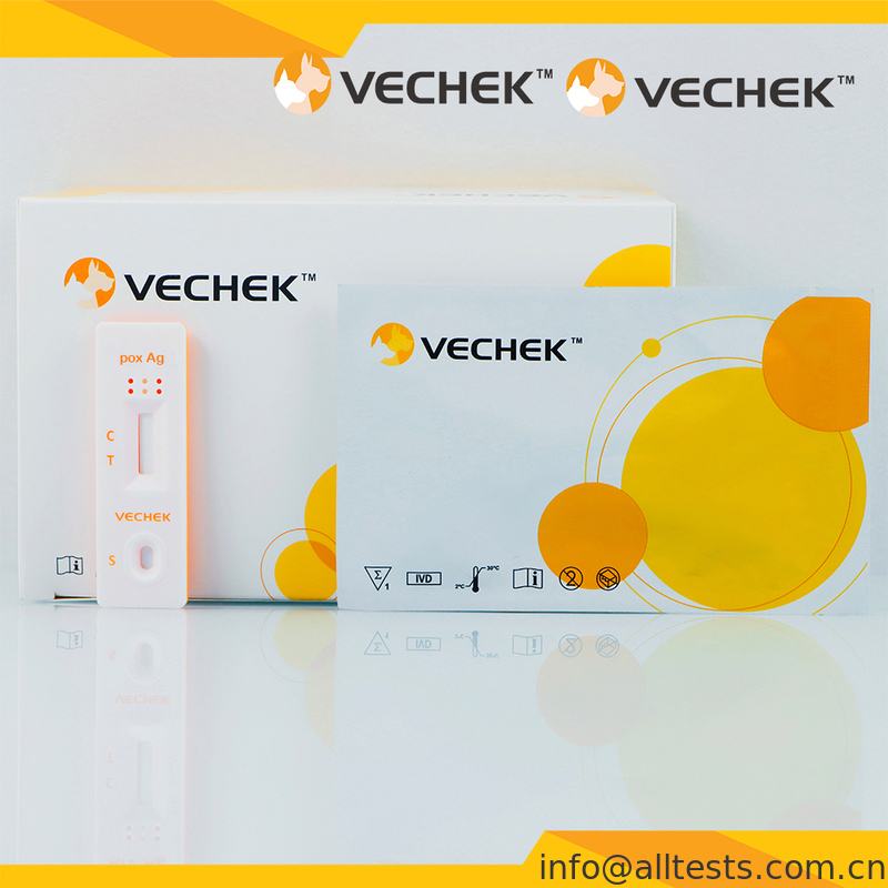 পক্স ভাইরাস অ্যান্টিজেন র্যাপিড টেস্ট ক্যাসেট (Swab) হল পক্সের ছত্রাক বা তরল নমুনায় কামেলপক্স এবং গরুপোকার ভাইরাস অ্যান্টিজেনের গুণগত সনাক্তকরণের জন্য একটি পার্শ্বীয় প্রবাহ ইমিউনোক্রোমাটোগ্রাফিক টেস্ট।শুধুমাত্র পশুচিকিত্সার জন্য.